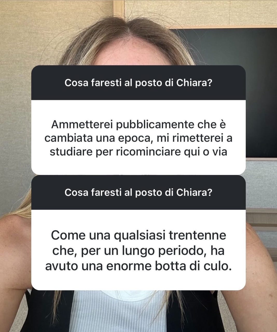 Il vantaggio è che tanti dei lettori di questa newsletter sono davvero esperti di media digitali: dirigenti di gruppi editoriali, imprenditori e strategist. Ecco perché, prima su Instagram e poi su Linkedin, ho chiesto alla community di Scrolling Infinito cosa avrebbe fatto al posto di Chiara.