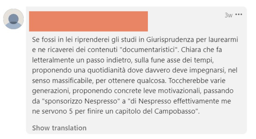 Chiara non è riuscita a trasformarsi da semplice influencer a creator, capace di creare contenuti più elaborati e di costruire un'audience da monetizzare direttamente, senza dipendere dalle collaborazioni con marchi esterni.